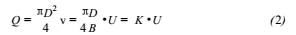 式(1)說明,導(dǎo)體在磁場內(nèi)作切割磁力線運動,導(dǎo)體兩端產(chǎn)生的感應(yīng)電動勢的大小與磁感應(yīng)強(qiáng)度B成正比,與導(dǎo)體的長度D成正比,與導(dǎo)體運動的速度v成正比。由式(2)可知液體的體積流量與感應(yīng)電動勢成正比,這就是酒精流量計的設(shè)計原理。