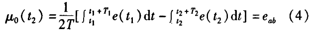 冷卻水流量計一般都采用工頻交流電源供電,其電源電壓的幅值和頻率的變化都會給冷卻水流量計帶來電源性干擾噪聲。對電源電壓的幅值變化,因采用多級集成穩(wěn)壓,一般而言電源電壓的幅值變化對電磁流量的測量精度影響不大。當(dāng)電源電壓的頻率波動時,雖然其波動范圍有限,但對冷卻水流量計測量精度影響較大。為了解決工頻干擾問題,實現(xiàn)對流體流速感應(yīng)電勢e柚信號的準確測量,需利用以下基本關(guān)系:①勵磁周期為工頻周期的整數(shù)倍,即勵磁頻率為50/nHz(n為偶數(shù));②正負勵磁下的同相位采樣。圖2是對應(yīng)低頻矩形波勵磁形式下的典型電勢信號形式,按上述關(guān)系在一個勵磁周期下,若假設(shè)t。和t:點為工頻干擾的等效干擾點,且采樣寬度T=T1=T2,則e –ab的基本算式為:,