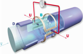其中B、D、S為常量,流量與感應(yīng)電動(dòng)勢(shì)U成正比關(guān)系,因此,測(cè)得感應(yīng)電動(dòng)勢(shì)U,即可得到流體流量。