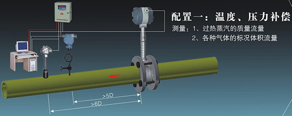 5、表體中同時集成溫壓補(bǔ)償補(bǔ)償功能,可測量流體的標(biāo)準(zhǔn)體積流量或標(biāo)準(zhǔn)質(zhì)量流量。