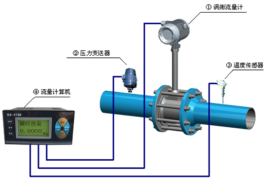 渦街流量計是以全新的設計理念,將溫度、壓力、流量信號集于一體,通過智能數字處理器將三種信號混合處理后輸出一個補償后的標準流量,從而實現了對氣體、蒸汽的溫壓補償功能。由于采用了智能一體化的設計理念,因此,凱銘渦街流量計具有結構緊湊、安裝使用維護方便的特點。