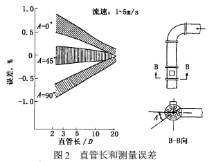 2000年上海原水公司擬在已建成的某泵站加裝DN2200稀硝酸流量計(jì),但彎管下游安裝位置的前直管長度明顯不符合規(guī)定中5D~10D(D為管徑,下同)的要求,此時(shí),影響測量誤差有多大呢?