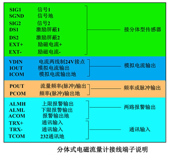 四、污水管網(wǎng)現(xiàn)場收方計量表轉(zhuǎn)換器接線端子接線圖說明