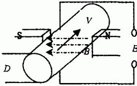 根據(jù)法拉*電磁感應(yīng)定律,即導(dǎo)電液體在磁場(chǎng)中切割磁力線運(yùn)動(dòng)時(shí),導(dǎo)體中產(chǎn)生感應(yīng)電勢(shì)(見(jiàn)圖1),其感應(yīng)電勢(shì)的大小與磁感應(yīng)強(qiáng)度、流體做切割磁力線強(qiáng)度等因素成正比。