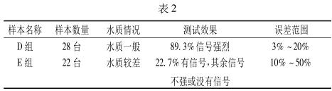 當然除了管徑這一大因素外,污水水質的好壞也是一個影響檢測效果的原因。把受檢的 50 臺流量計所流過的水質分為兩組,水質一般 D 組和水質較差 E 組。整理數(shù)據(jù)見表 2。