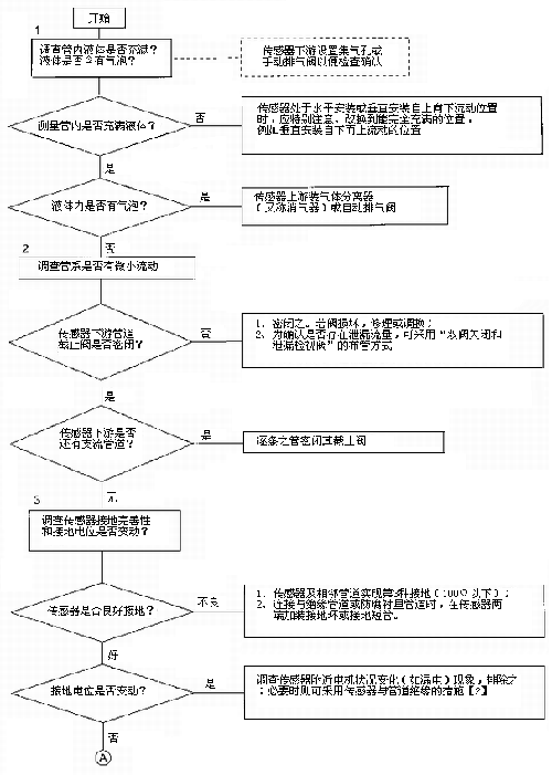 檢查流程圖*3項(xiàng)。管道雜散電流等外界干擾影響主要靠智能高溫水流量計(jì)良好的接地保護(hù),通常要求接地電阻小于1000,不要和具他電機(jī)電器共用接地。有時(shí)候環(huán)境條件較好,智能高溫水流量計(jì)不接地亦能正常工作,但是一旦良好環(huán)境不存在,儀表會(huì)出現(xiàn)故障,屆時(shí)再作檢查會(huì)帶來堵多麻煩。