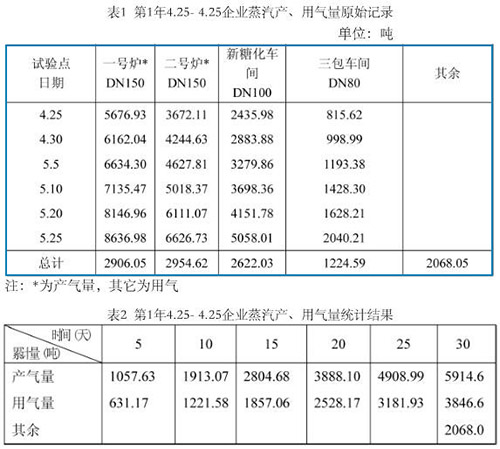 (1)綜上數(shù)據(jù),圖表可看出煙氣流量計(jì)測(cè)量飽和蒸汽,流量數(shù)據(jù)顯示清晰,穩(wěn)定可靠,其產(chǎn)、用氣量隨著流量計(jì)的完善,其差值變小了,也即使用部門越多,其消耗越少。