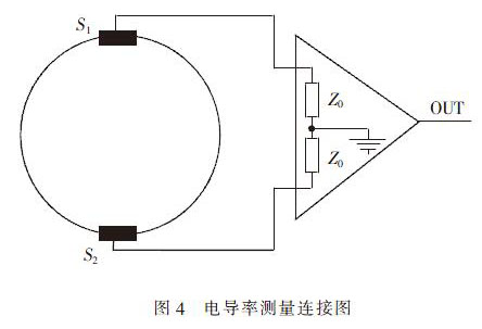 由井水流量計(兩電極)傳感器與信號放大器組成如圖4 所示