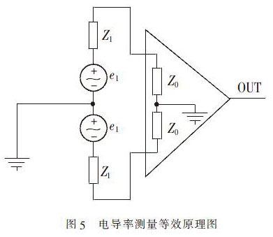 電路為對稱結構,圖中e1和Z1分別是傳感器的流量信號和對應的流體阻抗,Z0為放大器的輸入阻抗。