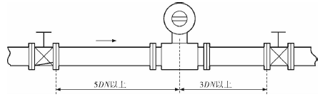 膠水管道流量表的安裝質(zhì)量對其測量結(jié)果的影響較大,因此在安裝時需要注意幾個問題。*先,膠水管道流量表直管段的選擇在配管時一定要按照要求進行選擇,一般選擇流量計通徑與工藝管道通徑相同,即可滿足工程需要,而且安裝方便、壓力損失小,流量計直管段上游側(cè)的長度不少于5倍工藝管道直徑,下游側(cè)的長度不少于3倍工藝管道直徑(圖2)。但在流速太慢而又要求精度較高或需要變徑的應(yīng)用場合,可選擇通徑小于工藝管道通徑的流量計,以提高測量精度,此時流量計上、下游必須加裝異徑管,且進口異徑管上游側(cè)應(yīng)有長于10倍工藝管道直徑的直管段,下游側(cè)應(yīng)有長于5倍工藝管道直徑的直管段(圖3)。