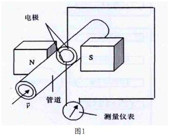 硝酸流量表的設(shè)計(jì)是根據(jù)法拉*電磁感應(yīng)定律,導(dǎo)管中導(dǎo)電的流體被看作導(dǎo)體,管道的內(nèi)徑可看作道導(dǎo)體的長(zhǎng),原理圖如圖1所示,兩電極裝到與管道的中心軸和磁場(chǎng)方向組成的平面相垂直,拾取液體產(chǎn)生的感應(yīng)電動(dòng)勢(shì)。感應(yīng)電動(dòng)勢(shì)為: