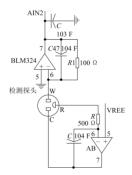 將電壓值放大2 000 ~3 000 倍,方便 A/D 轉(zhuǎn)換的同時還可提升檢測的準確度?;?SO 2 -2000 傳感器的工作性質(zhì),煙氣中二氧化硫與傳感器進行氧化反應(yīng)的過程中,因形成輸出電流而使工作電極與其電勢差出現(xiàn)變化,電勢差過大將造成檢測結(jié)果出現(xiàn)較大誤差。因此 SO 2 -2000 傳感器中采用運算放大器連接工作電極和參考電極,工作電極與參考電極間的電勢差利用運算放大器的負反饋作用實現(xiàn)穩(wěn)定。
