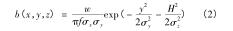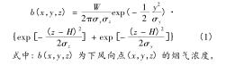 式中: b(x,y,z) = w × e(x,y,z),其中 e(x,y,z) 為二氧化硫濃度與循環(huán)流化床dn150渦街流量計煙氣排放源煙氣強度的比例系數(shù);f 為平均風(fēng)速,m/s; w 為地面空氣內(nèi)煙氣排放強度;σ x 為橫向擴散系數(shù)受環(huán)境穩(wěn)定度與下風(fēng)向距離因素的影響程度。式(3)中描述的是基于時間變化的循環(huán)流化床dn150渦街流量計煙氣排放源煙氣排放強度計算模型。