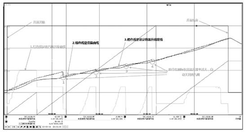 全過(guò)程升溫曲線見(jiàn)圖 2,從圖 2 可以看出,通過(guò)上述工藝參數(shù)的設(shè)定,從升溫開(kāi)始到升溫結(jié)束,管道式流量計(jì)溫基本上是按照溫升梯度進(jìn)行升溫,當(dāng)出現(xiàn)溫升速率太快時(shí),蒸汽閥自動(dòng)關(guān)閉,無(wú)需人工參與,可以自動(dòng)控制管道式流量計(jì)料液溫度的平緩上升,實(shí)現(xiàn)脫溶單元操作自控運(yùn)行。