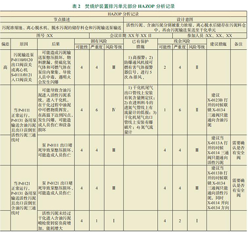 本次分析組的主要人員有:企業(yè)氫氣流量計(jì)分析組以及焚燒爐裝置工藝工程師、設(shè)備工程師、儀表工程師、安全工程師和操作班組長(zhǎng)。本次分析主要依據(jù)公司級(jí)相關(guān)標(biāo)準(zhǔn)和規(guī)范:《健康安全環(huán)境風(fēng)險(xiǎn)標(biāo)準(zhǔn)》以及《危險(xiǎn)與可操作性分析(氫氣流量計(jì))規(guī)范》,并于 1 個(gè)月內(nèi)對(duì)焚燒爐裝置進(jìn)行了分析,發(fā)現(xiàn)了部分重大的風(fēng)險(xiǎn)和隱患。按建議措施對(duì)應(yīng)的風(fēng)險(xiǎn)等級(jí)劃分,其中包括:Ⅳ級(jí)嚴(yán)重風(fēng)險(xiǎn)(限期整改強(qiáng)制性措施);Ⅲ級(jí)高度風(fēng)險(xiǎn)(限期整改強(qiáng)制性措施);Ⅱ級(jí)中度風(fēng)險(xiǎn)(期望改進(jìn)推薦性措施);Ⅰ級(jí)可接受風(fēng)險(xiǎn)(建議性措施)。本報(bào)告僅逐一列出部分較高或容易忽視的風(fēng)險(xiǎn)(其他在氫氣流量計(jì)分析的記錄中體現(xiàn))。評(píng)估發(fā)現(xiàn):本次分析評(píng)估共發(fā)現(xiàn)三級(jí)風(fēng)險(xiǎn) 25 項(xiàng)(類),其中排污單元三級(jí)風(fēng)險(xiǎn) 2 項(xiàng)(類)。其中,焚燒爐裝置排污單元分析記錄內(nèi)容如表 2 所示。