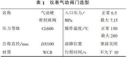 1) 蒸汽計(jì)量流量計(jì)出口管線總閥泄漏無(wú)法在線處理,導(dǎo)致氣化爐停車。在入氣化爐根部增加 2 臺(tái)儀表氣動(dòng)閥門,要求每月進(jìn)行 2 次開、關(guān),防止閥門出現(xiàn)卡塞現(xiàn)象。 新增 2 臺(tái)儀表氣動(dòng)閥門相關(guān)參數(shù)見表 1。