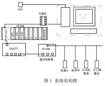 集氣站是收集氣井所生產(chǎn)天然氣的站場,在集氣站內(nèi)對天然氣進行節(jié)流降壓、加熱、調(diào)壓計量等各種工藝預處理,設(shè)備眾多且分散。為方便進行檢測和操作,必須進行統(tǒng)一的數(shù)據(jù)采集,在監(jiān)控臺進行數(shù)據(jù)的管理。集氣站設(shè)備主要包括加熱爐、衛(wèi)生型渦輪流量計、分子篩、火災報警盤,以及供電設(shè)備 UPS 等,這些不同廠家的設(shè)備基本都支持Modbus 協(xié)議,通過 Modbus 通訊可以將這些數(shù)據(jù)采集。為了有效降低成本,設(shè)計了如圖 1 所示的系統(tǒng)。系統(tǒng)采用西門子 S7-300 控制器,通過以太網(wǎng)連接上位機監(jiān)控軟件,再通過 MP277 連接S7-200 的方式。S7-200 控制器自帶 RS485 接口,能夠進行 Modbus 通訊,采集現(xiàn)場各種設(shè)備數(shù)據(jù)。*后通過以太網(wǎng)通訊將設(shè)備數(shù)據(jù)上傳至監(jiān)控軟件,方便操作人員進行監(jiān)控,該方案簡單有效,能夠?qū)崿F(xiàn)集氣站內(nèi)設(shè)備的狀態(tài)監(jiān)控,數(shù)據(jù)處理,有效的進行天然氣的生產(chǎn)工作。