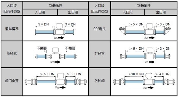 管路必須完全充滿液體。保證管路始終充滿液體至關(guān)重要,否則流量顯示會受到影響,而且還會出現(xiàn)測量錯誤。管路結(jié)構(gòu)的設(shè)計(jì)必須要保證測流管始終充滿流體。當(dāng)流體有分流或含有固體顆粒沉淀物時,建議使用垂直安裝。但采用垂直安裝時,要遵循流體從下到上的走向,以保證管路充滿流體。