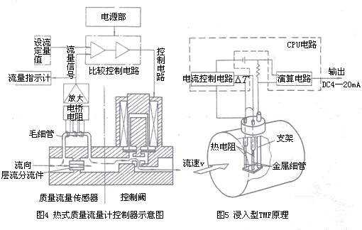 市場(chǎng)上熱分布式tmf按測(cè)量管內(nèi)徑分為細(xì)管型(也有稱毛細(xì)管型)和小型兩大類,結(jié)構(gòu)上有較大區(qū)別。小型測(cè)量管儀表只有直管型,內(nèi)徑為4mm;細(xì)管型測(cè)量管內(nèi)徑僅0.2~0.5mm。稍大者為0.8~1mm,極容易堵塞,只適用于凈化無塵氣體。細(xì)管型儀表還有一種帶有調(diào)節(jié)單元和控制閥等組成一體的熱式質(zhì)量流量控制器,結(jié)構(gòu)如圖4所示。