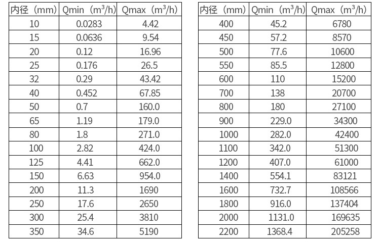 在有些工況條件下(如流體介質(zhì)可能在傳感器中造成沉積物,且流速偏低),為使儀表工作在合適的流速范圍,在工藝流量較穩(wěn)定,且允許一定的壓力損失時,可選擇儀表口徑小于工藝管道口徑,在儀表前后加異徑管,使儀表內(nèi)局部流速提高。